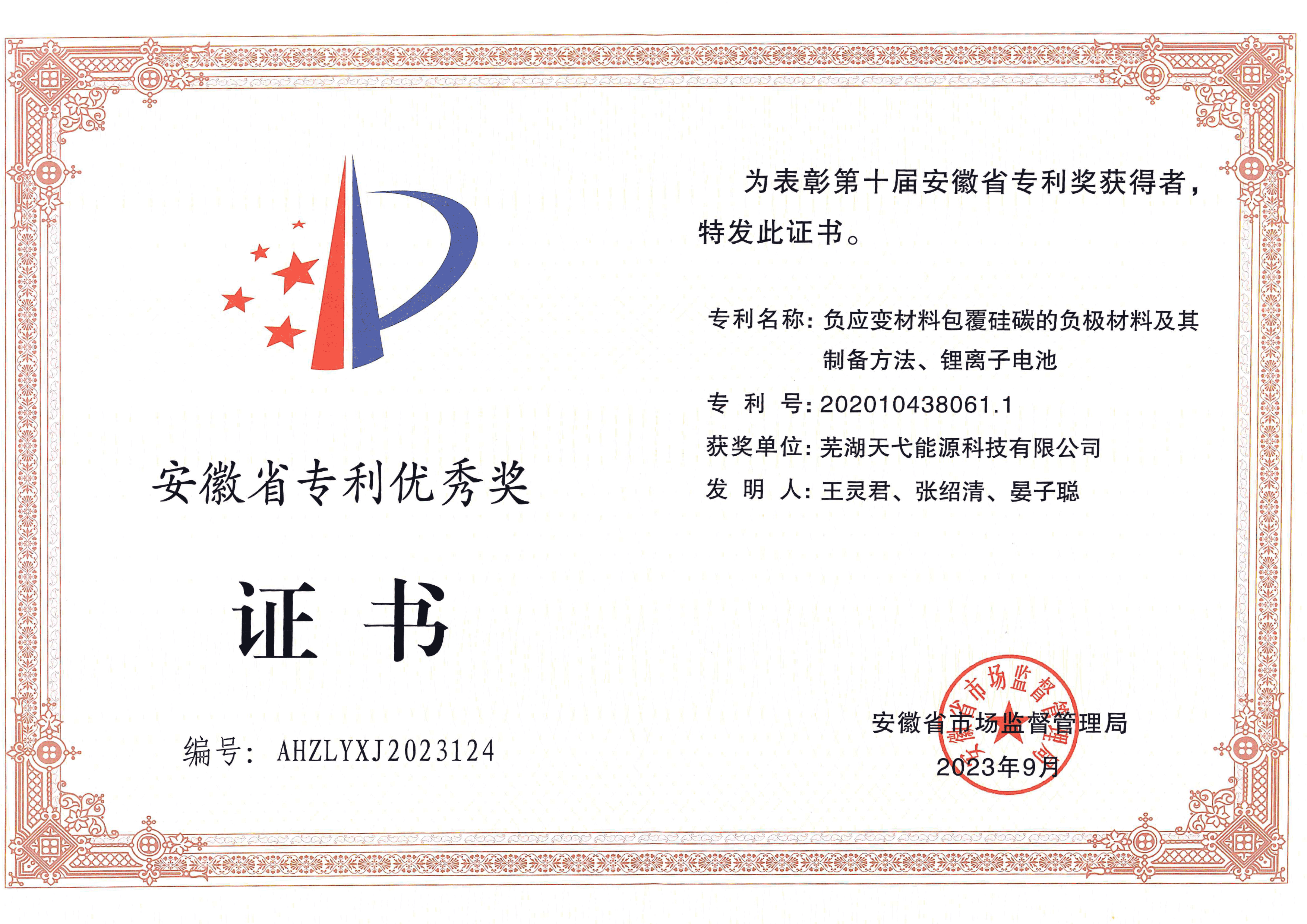 - 第十屆安徽省專利優(yōu)秀獎